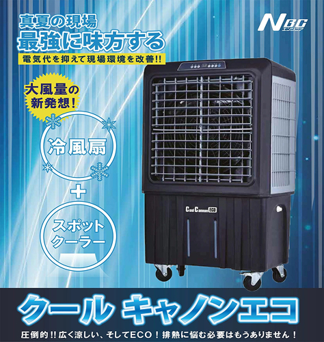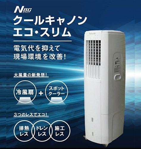 クールキャノンエコスリムは、水と電気と100vあればどこでも使える移動式クーラーです。特徴は排熱が出ないR32の冷媒を使用面倒なドレン水処理も不要。